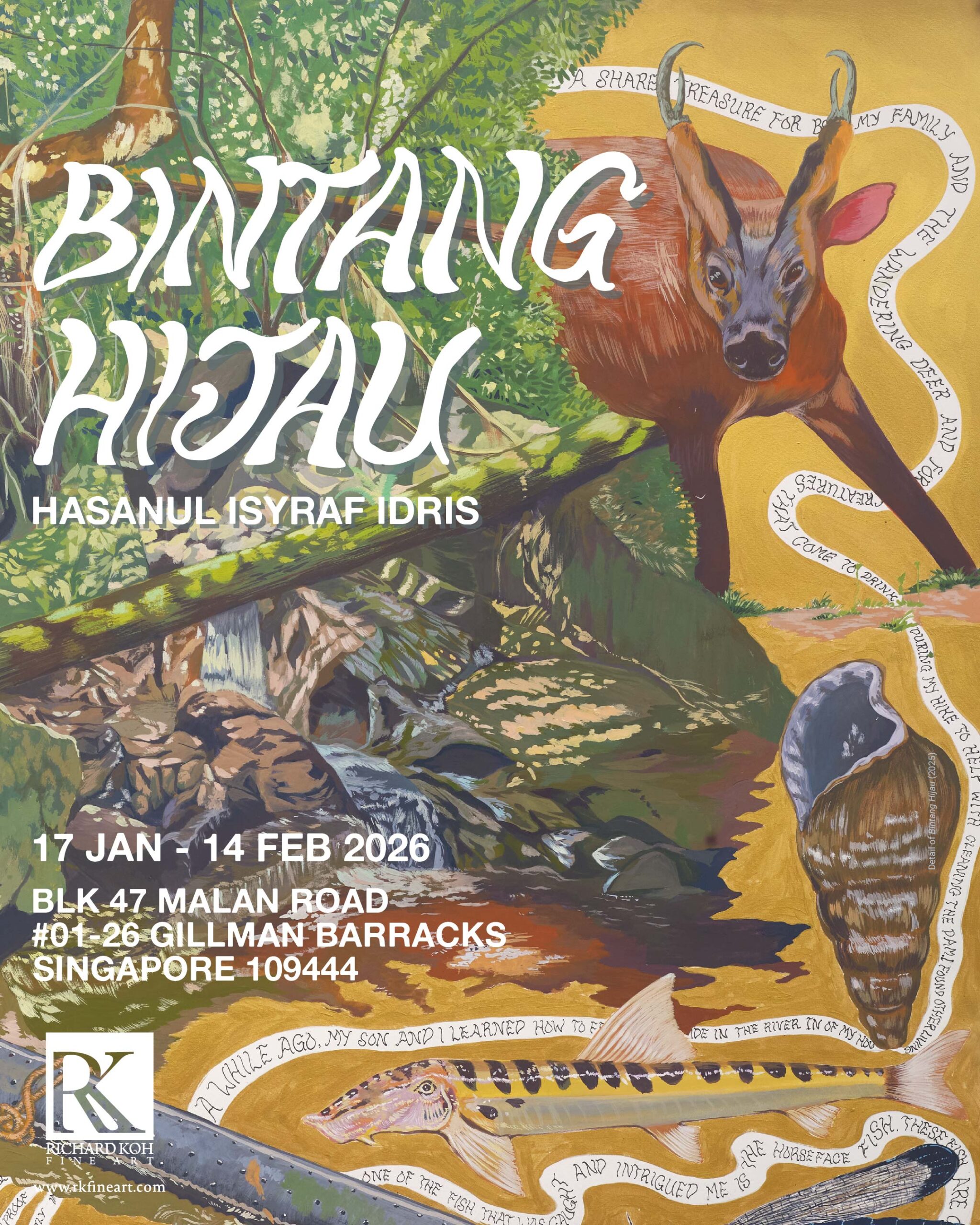 Richard Koh Fine Art (Singapore) is delighted to present Bintang Hijau, a solo exhibition by Malaysian artist Hasanul Isyraf Idris (b.1978), held in conjunction with Singapore Art Week 2026. Bintang Hijau takes its title from the permanent forest reserve located in Selama, Perak, one of the poorest regions in…