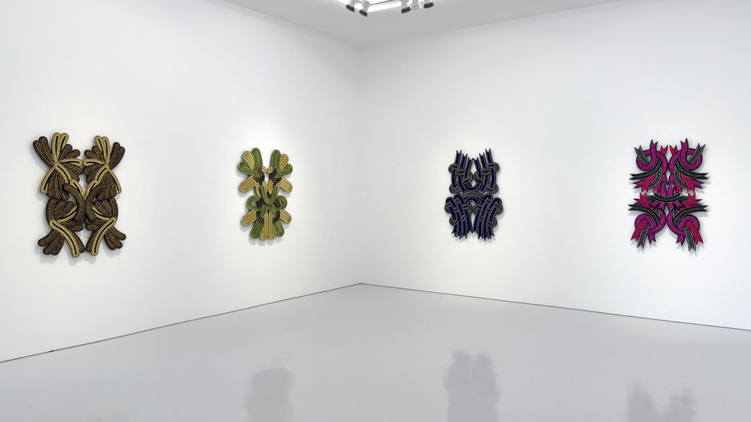 Samuel’s work is defined by a closely held relationship with materials. His meticulous, labour-intensive process doubles as a meditative exercise, reflecting on past and present realities. Through signature ornamentation and vibrant palettes, colour, texture, and text are positioned as tools to explore visibility and engage with societal discourse. Often taking the form of intricate abstract visual systems, the works navigate in-betweenness, balancing excess and restraint, inviting reflection on the narratives we construct for ourselves and their impact on our social condition.