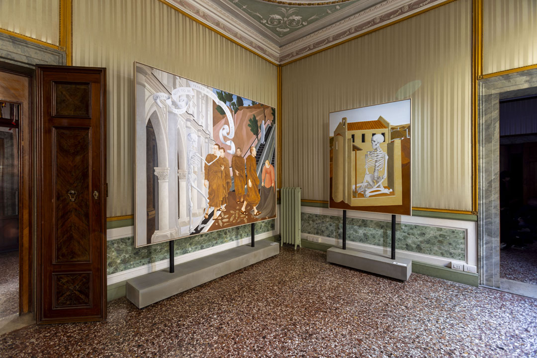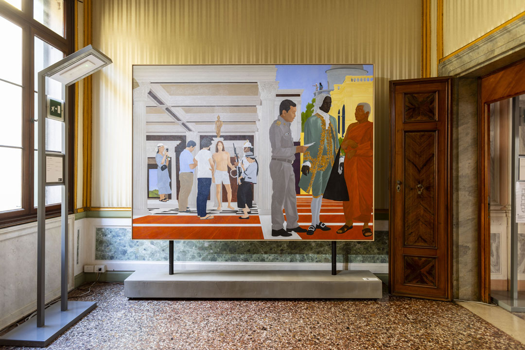 In this exhibition, Natee Utarit infuses Buddhist philosophy with Western art history that conveys contradiction and absurdity. East-West encounters depict foreigners everywhere in temples and piazzas. Convoluted time and space take viewers back to the time when the serene and exotic life of foreigners searched for abundance and refuge between Venice and Bangkok.